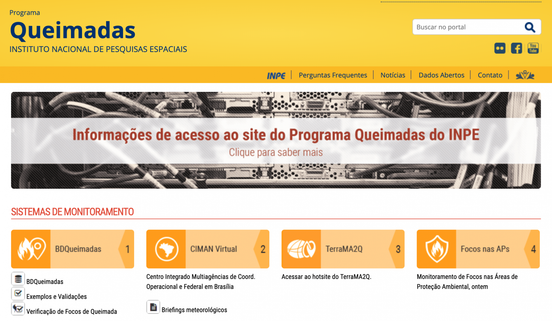 Acesse aqui o aplicativo de Monitoramento de Quiemadas do Instituto Nacional de Pesquisas Espaciais.