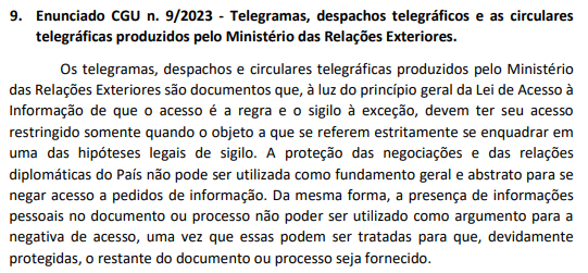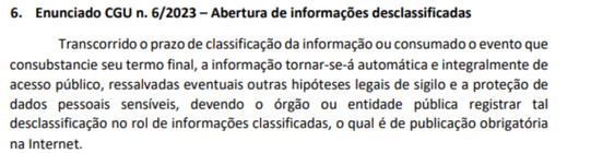 - Nós entregamos à equipe de transição do governo uma lista de documentos cujo prazo de sigilo expirou. Essa nova regra garante que não exista mais o sigilo por tempo indeterminado: acabou o prazo, precisa divulgar.