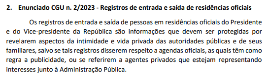 - Nada muda sobre as visitas às residências de presidentes e vice-presidentes - a informação seguirá sendo sigilosa.