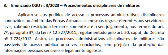 - Quando um militar sofrer algum processo disciplinar, o documento será público. Melhoria inspirada no caso do general Pazuello, que conseguiu temporariamente sigilo sobre o processo que enfrentou por apoiar Bolsonaro em uma manifestação política - o que é vetado aos militares.