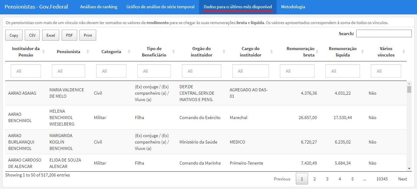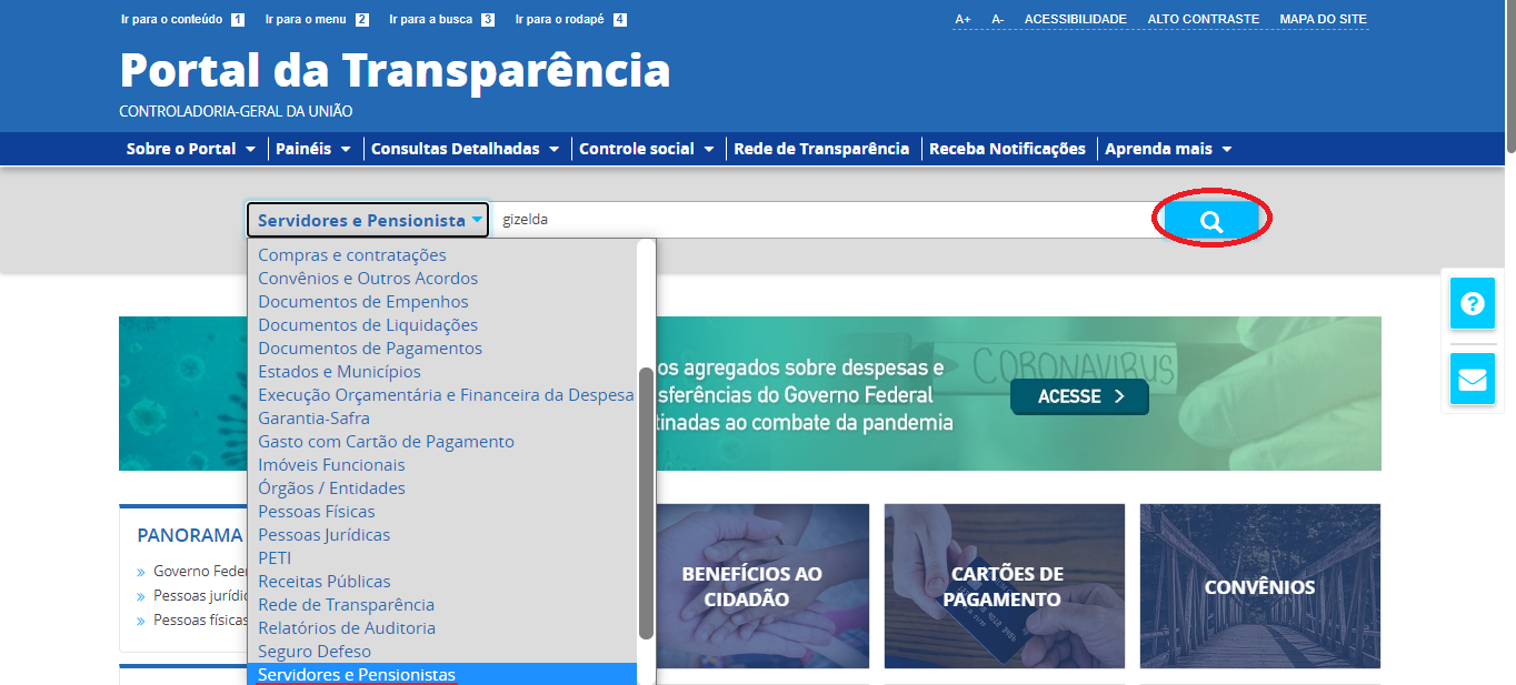 Acessando dados de pensionistas pelo Portal da Transparência