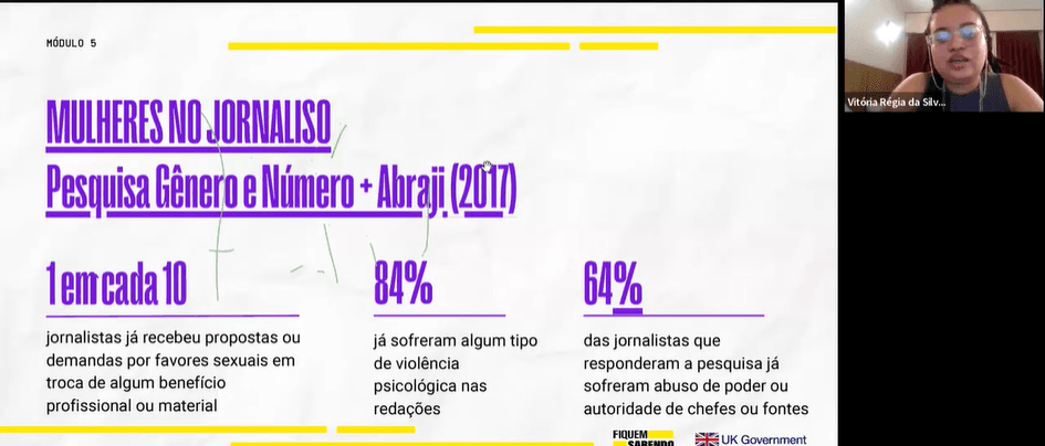 Com apoio da Embaixada Britânica, curso online certificou 225 mulheres; oito receberam microbolsas para produzir reportagens investigativas.