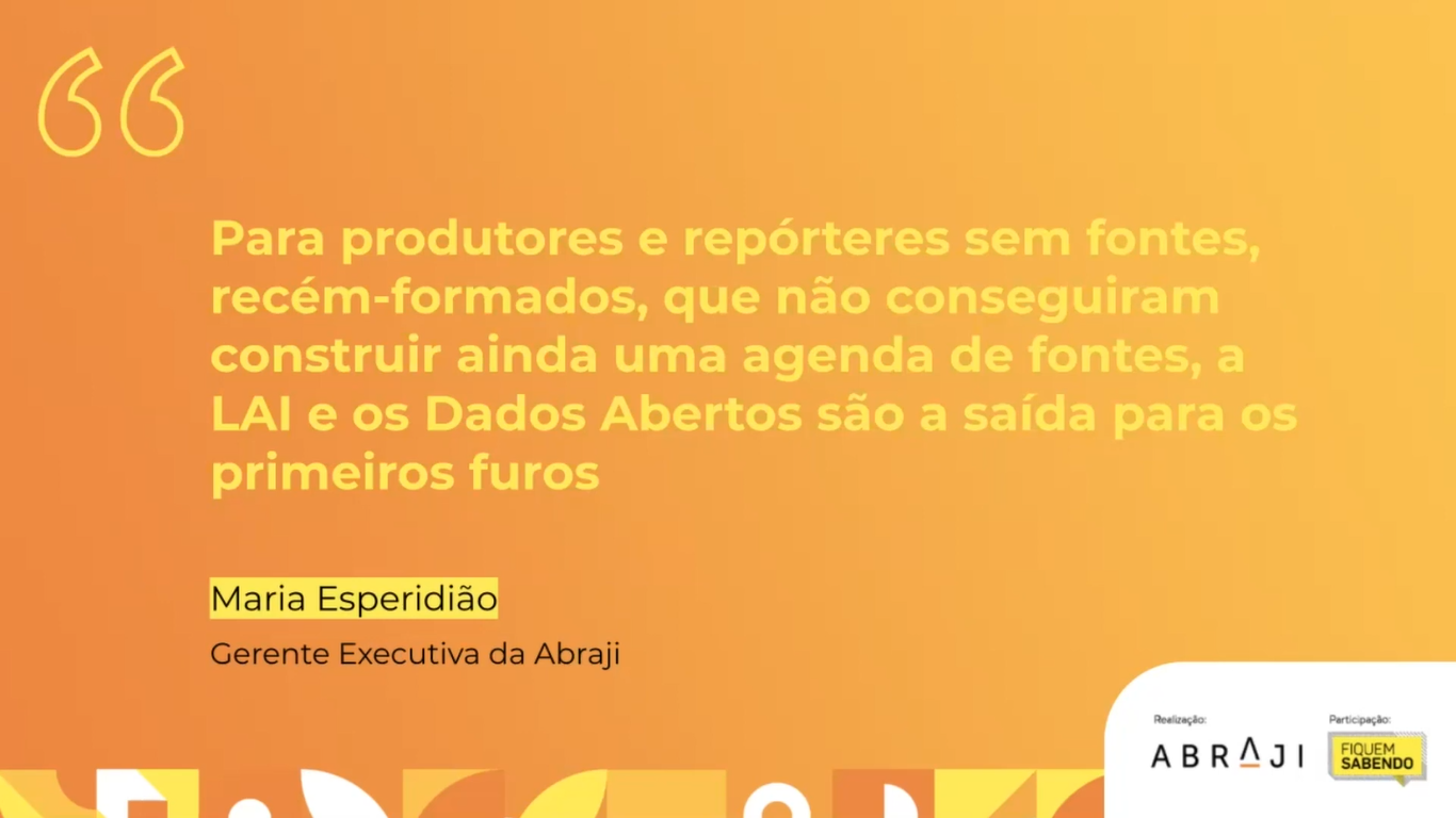 A Associação Brasileira de Jornalismo Investigativo (Abraji) e a Fiquem Sabendo abrem, nesta quinta-feira, 10.fev.2022, as inscrições para a nona turma do curso on-line e gratuito “LAI nas Redações”. O treinamento que visa orientar jornalistas a como acionar a Lei de Acesso à Informação (LAI) no processo de apuração de reportagens teve início em out.2021 e já contou com a participação das redações do O Estado de S.Paulo, Correio Braziliense e Grupo Globo.